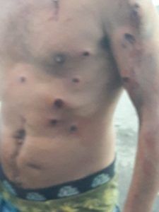 He aquí el detonante de todo lo que aconteció luego; Los policías se bajan del vehículo y sin mediar palabra comienzan a golpear brutalmente con la cachiporra en primera instancia y con proyectiles de escopeta calibre 12/70 mm con perdigones de goma. En seguida, corren a su auxilio jóvenes y familiares que estaban jugando fútbol en una cancha próxima al suceso. Estos son también brutalmente atacados y se refugian en una casa próxima. Las piedras son las únicas defensas contra el arsenal del cordón policial atrincherado frente al domicilio, en el cual se encontraban: