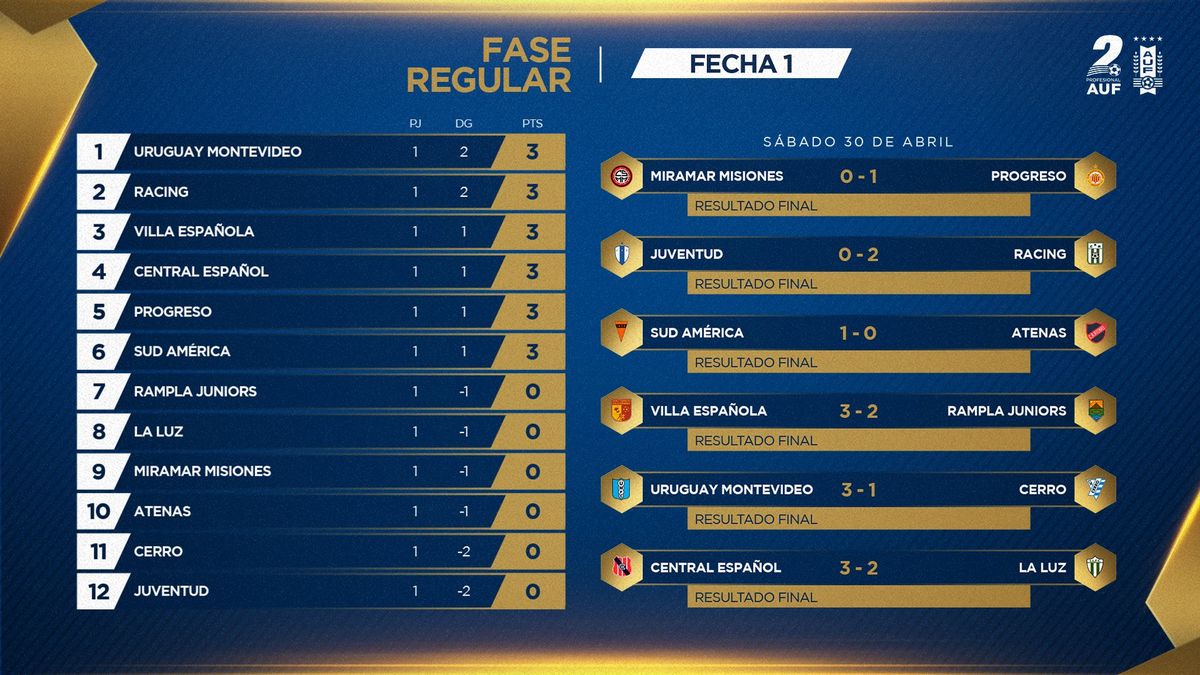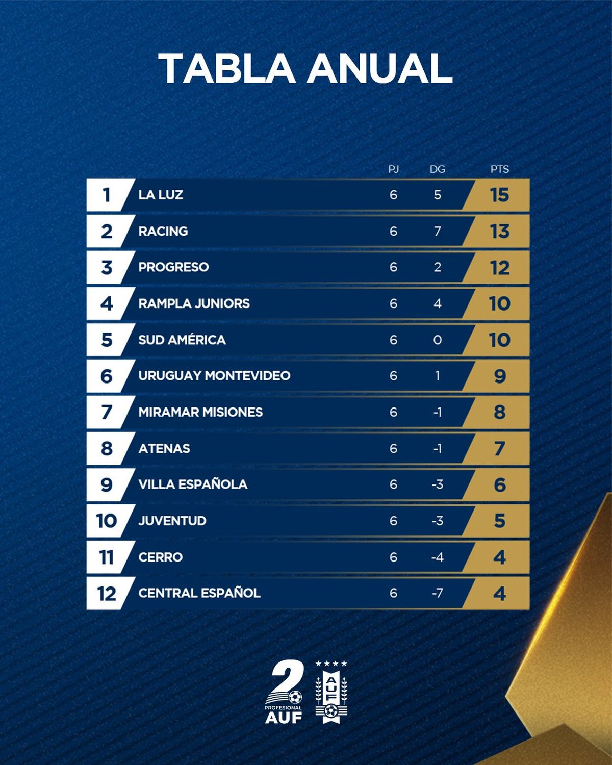 Central Español fue el último en esa tabla, sin embargo hoy venció a La Luz, por lo que igualó la posición de Cerro que perdió con Uruguay Montevideo y ambos quedaron últimos.