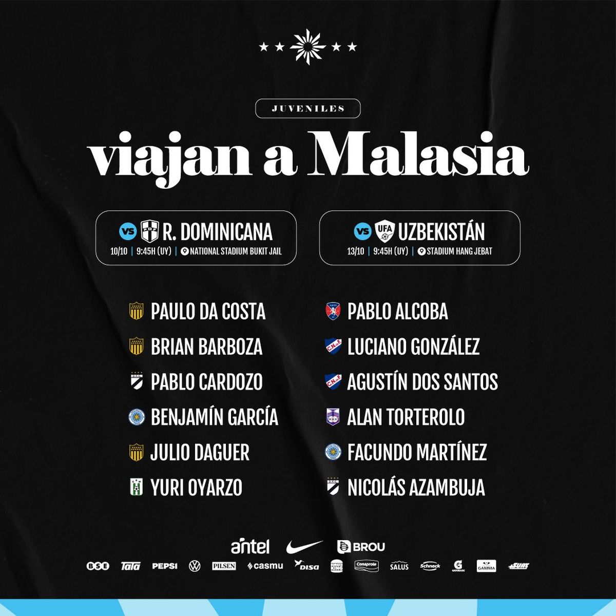 Entre el 6 y el 10 de octubre se va a estar desarrollando la fecha FIFA del mes de octubre, en dónde Uruguay enfrentará a República Dominicana y Uzbekistán, ambos partidos tendrán lugar en Malasia. AUF publicó los detalles de lo que será el viaje de la selección.