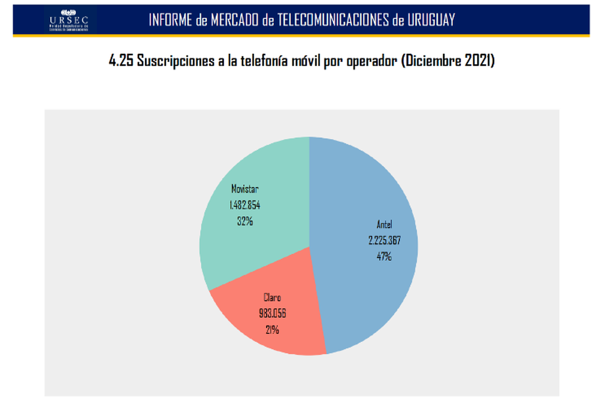 Esto es consecuencia de un crecimiento del 6,1% interanual (dic 21 vs dic 20) en el número de servicios móviles durante 2021, que se incrementó en 128.913 servicios nuevos durante 2021 pasando de 2.096.454 en diciembre de 2020 a 2.225.367 en diciembre de 2021.