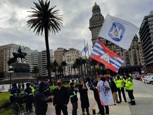 Retomando las movilizaciones para reivindicar el posible cierre de la planta de Alcoholes del Uruguay (ALUR), el Sindicato de Trabajadores de la Industria Química (STIQ) se movilizó frente a la Torre Ejecutiva en la mañana de este jueves.