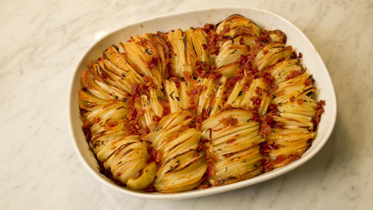Esta receta de guarnición, que tiene papas y panceta como principales ingredientes, es ideal para preparar platos principales para la temporada de fríos invernales que se avecina. Una de las características destacadas de esta guarnición es su versatilidad. Con ella se puede acompañar, por ejemplo, una carne cocinada al horno, un pescado preparado a la plancha, o también puede ser la protagonista del almuerzo o la cena con el acompañamiento de una ensalada fresca de verdes bien condimentada.