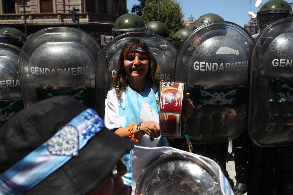La periodista Patricia Chaina cuenta : "Eran las dos de la tarde cuando, en una Plaza Congreso colmada de manifestantes, ingresaron referentes populares que sintetizaban con su presencia el espíritu del día. Es el primer paro general con movilización realizado contra el gobierno de Javier Milei y allí llega el líder camionero Hugo Moyano. Y también llegan las Madres de Plaza de Mayo, de la Asociación y de la Línea Fundadora, custodiadas por trabajadores de Foetra, el sindicato de telecomunicaciones. En ese momento se entonó el Himno Nacional y hubo emoción y se sintió la fortaleza de un pueblo que aprendió a congregarse y marchar por sus derechos.