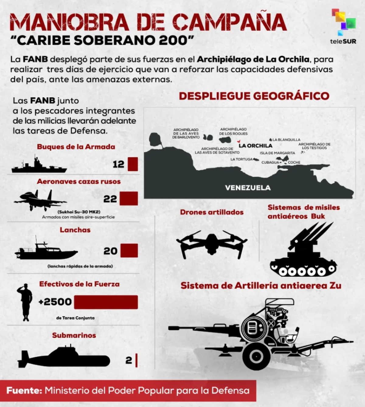 Esta operación de fortalecimiento de la Defensa responde a la amenaza que representa el despliegue de la Armada de Estados Unidos en aguas del Caribe, que habría atentado contra cuatro lanchas con saldo mortal, y abordado por la fuerza un atunero venezolano.