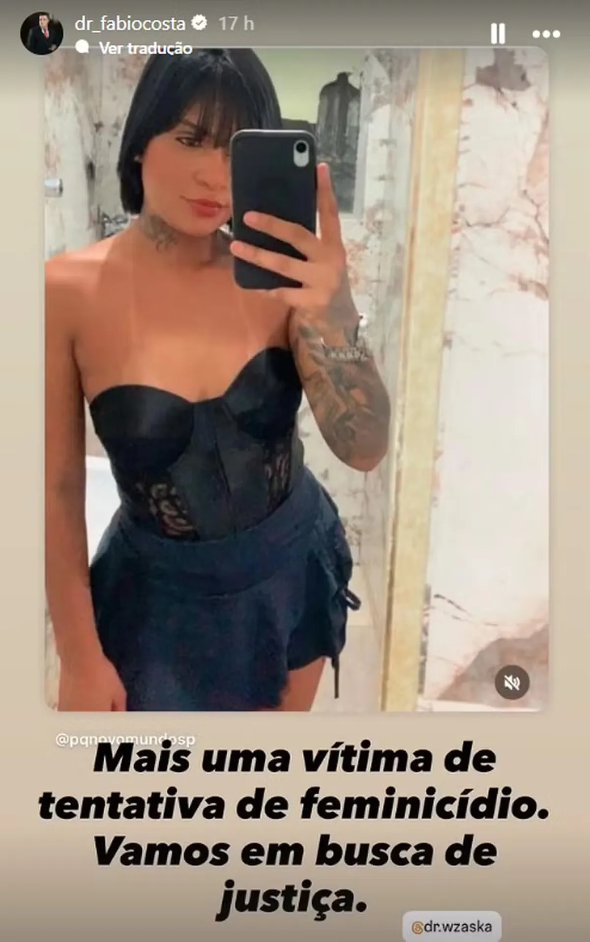 Alves da Silva fue atendido y trasladado a la comisaría. El caso quedó registrado en la 73ª Comisaría (Jaçanã) como intento de feminicidio. La Secretaría de Seguridad Pública confirmó que la investigación apunta a un acto deliberado, mientras que en redes sociales el abogado de la víctima aseguró que “lucharán hasta el final” para que el responsable sea condenado.