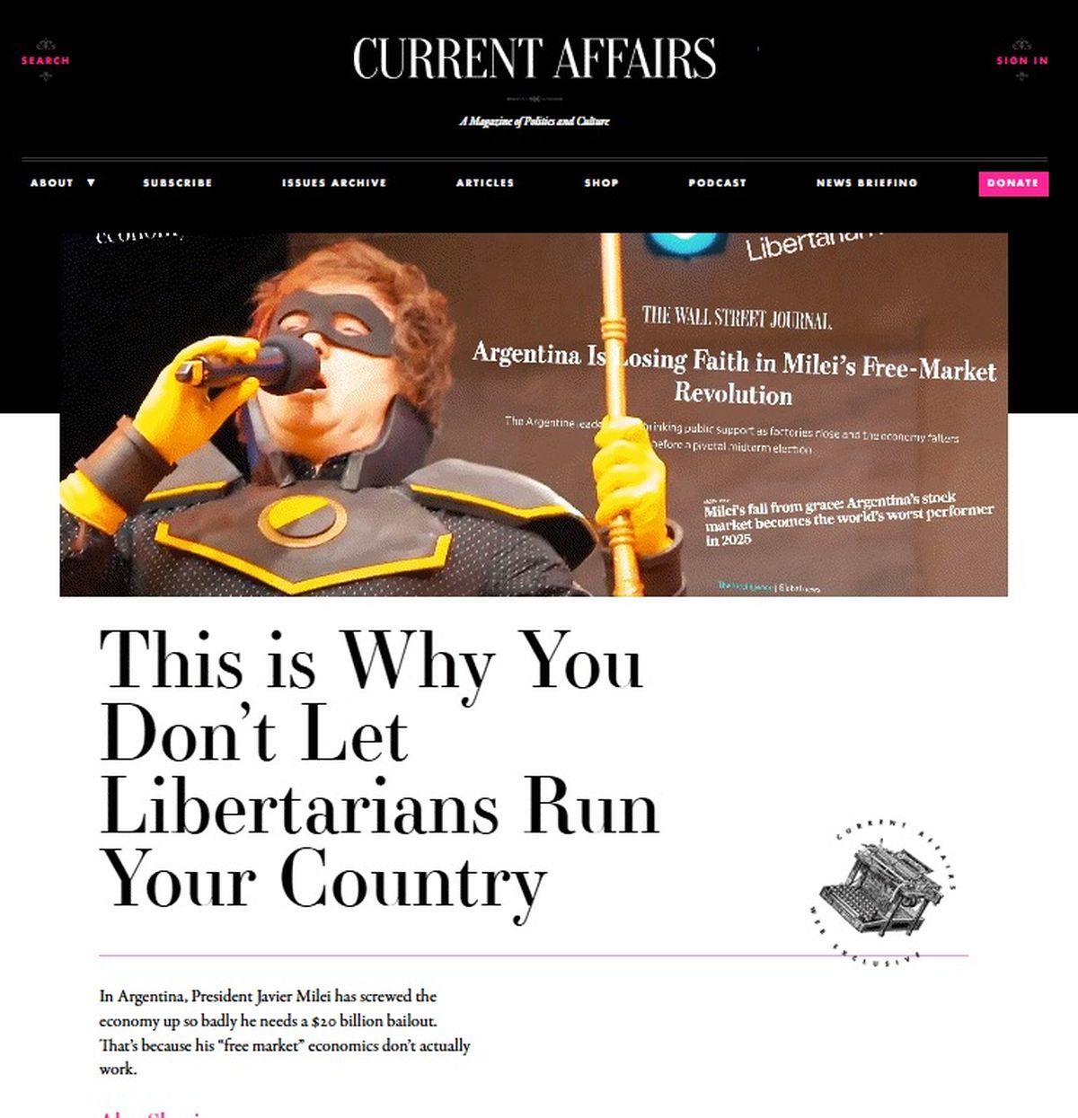 “Milei se hizo pasar por un forastero que podía hacer la cirugía de emergencia para arreglar su país; ahora está en deuda con las mismas instituciones que una vez despreció y depende para su apoyo de una potencia extranjera al norte y de las élites adineradas del país que se han adueñado de gran parte de la riqueza de Argentina.”