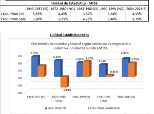 Durante los años de la dictadura 1973-1985, el crecimiento económico anual llegó al 4,5 %, pero los salarios cayeron un 2,89 %. Durante la década del noventa, el crecimiento de Uruguay fue del 3,34 %, promedio anual, pero los ingresos de los trabajadores aumentaron solamente un 0,46 %. En ambos momentos, la negociación colectiva no fue convocada por las autoridades.