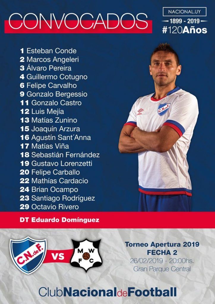 El equipo parece definido:Esteban Conde; Guillermo Cotugno, Marcos Angeleri y Matías Viña; Matías Zunino, Joaquín Arzura y Álvaro Pereira; Santiago Rodríguez y Gonzalo Castro; Sebastián Fernández y Octavio Rivero.