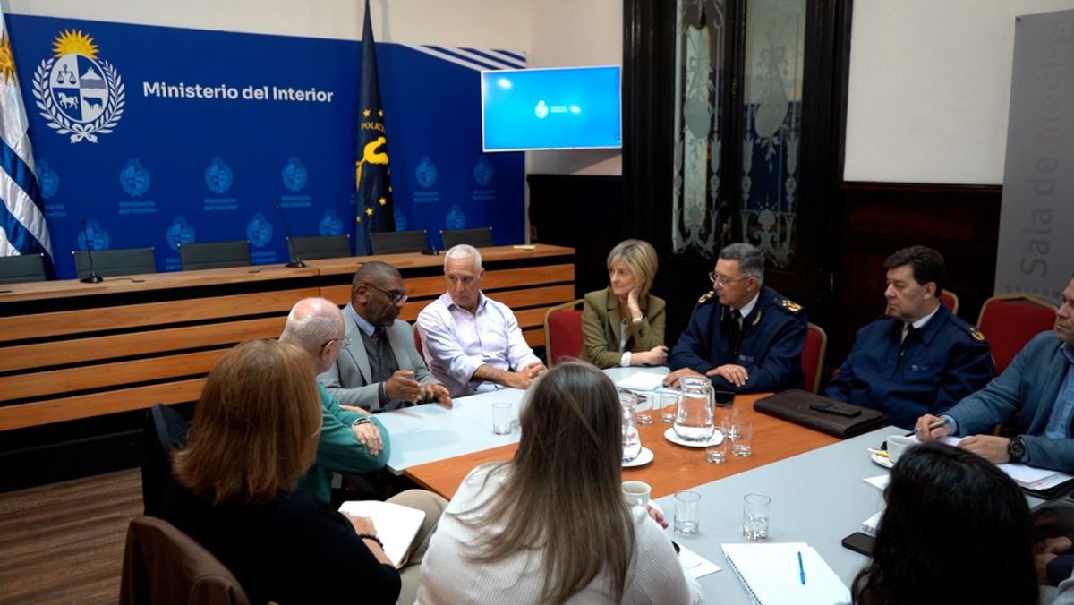 De la reunión de trabajo participó el ministro del Interior, Dr. Carlos Negro, la subsecretaria, Cra. Gabriela Valverde, el Director de la Policía Nacional, Comisario General (R) José Manuel Azambuya, el Director Nacional de Seguridad Rural, Comisario Mayor (R) Ernesto Cossio y autoridades de la Dirección General de Lucha Contra el Crimen Organizado e Interpol.