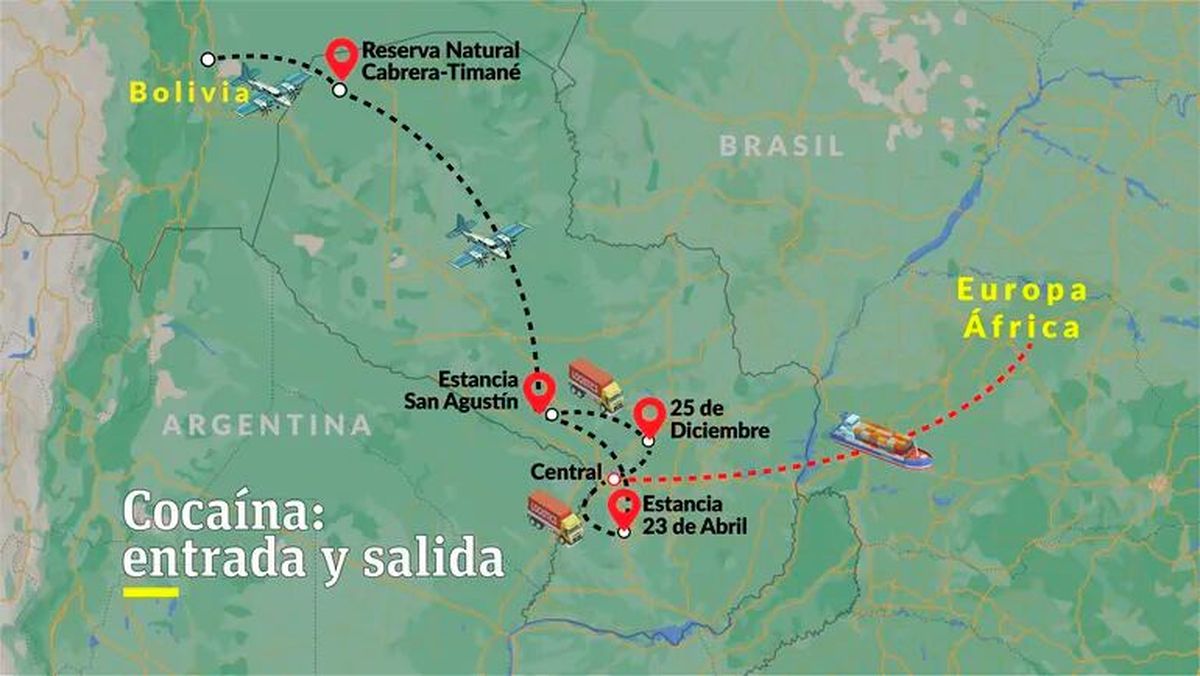 Si bien, por esos tiempos, la organización de Marset e Insfrán enviaba a Europa grandes cargamentos de cocaína por vía fluvio-marítima, desde la hidrovía hacia el Atlántico, siempre mantuvo una línea aérea hacia Argentina y Uruguay.