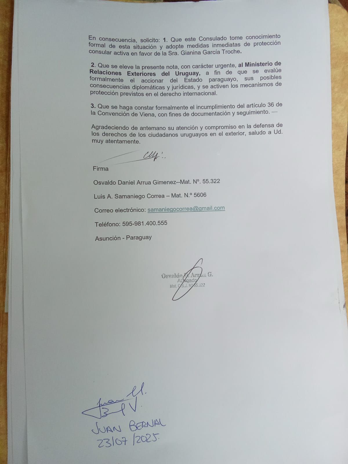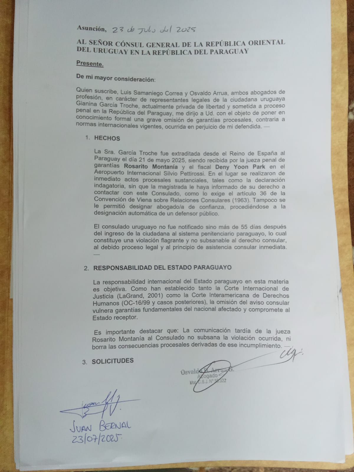 Defensa de Gianina García Troche denunció a Paraguay ante el consulado uruguayo