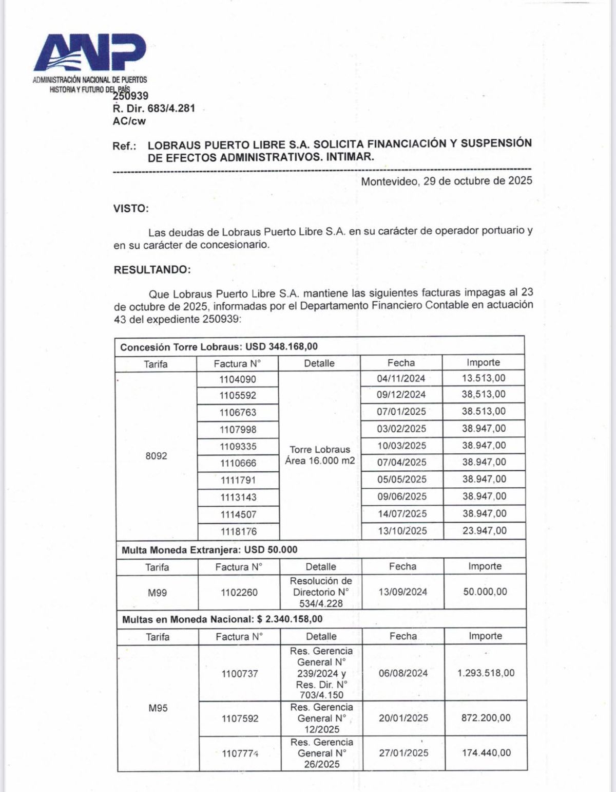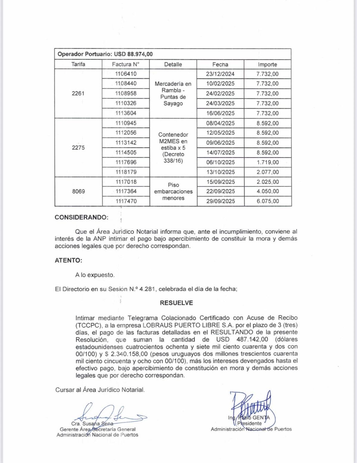 La Dirección Nacional de Aduanas decidió clausurar habilitación a la empresa Lobraus, suspendida por la Administración Nacional de Puertos (ANP) como operador.