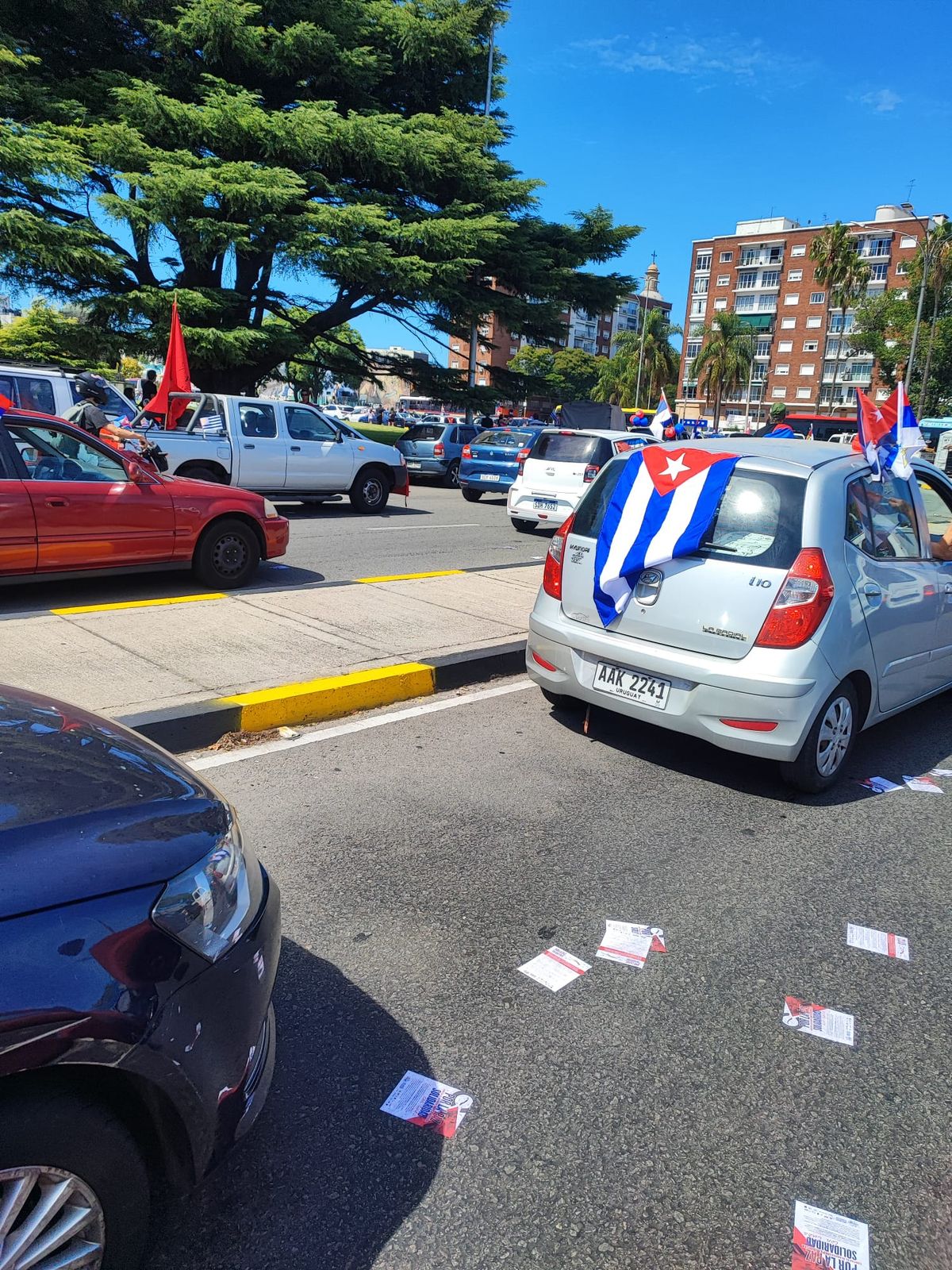La convocatoria a la caravana fue multitudinaria en apoyo a Cuba y exigiendo el fin del bloqueo que impone EEUU sobre la isla.