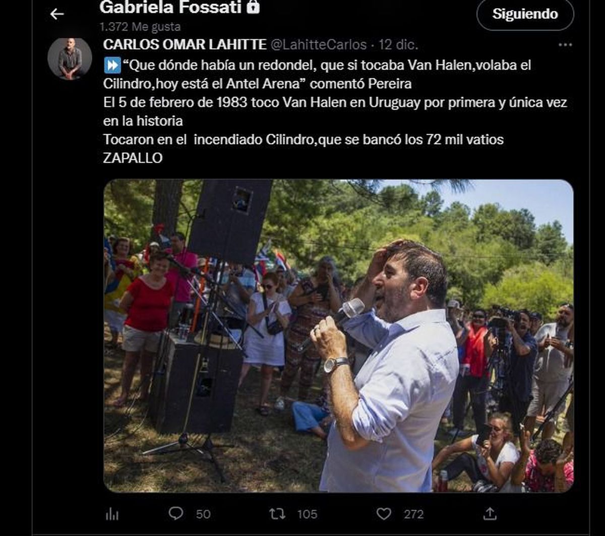 En la mencionada publicación, un usuario de la red social tildó al titular del FA como "ZAPALLO". Se trata de un comentario del usuario Carlos Omar Lahitte que incluye una foto de Fernando Pereira: ¨Que donde había un redondel, que si tocaba Van Halen volaba el Cilindro, hoy está el Antel Arena’, comentó Pereira. El 5 de febrero de 1983 tocó Van Halen en Uruguay por primera vez y única vez en la historia. Tocaron en el incendiado Cilindro, que se bancó los 72 mil vatios. ZAPALLO”.