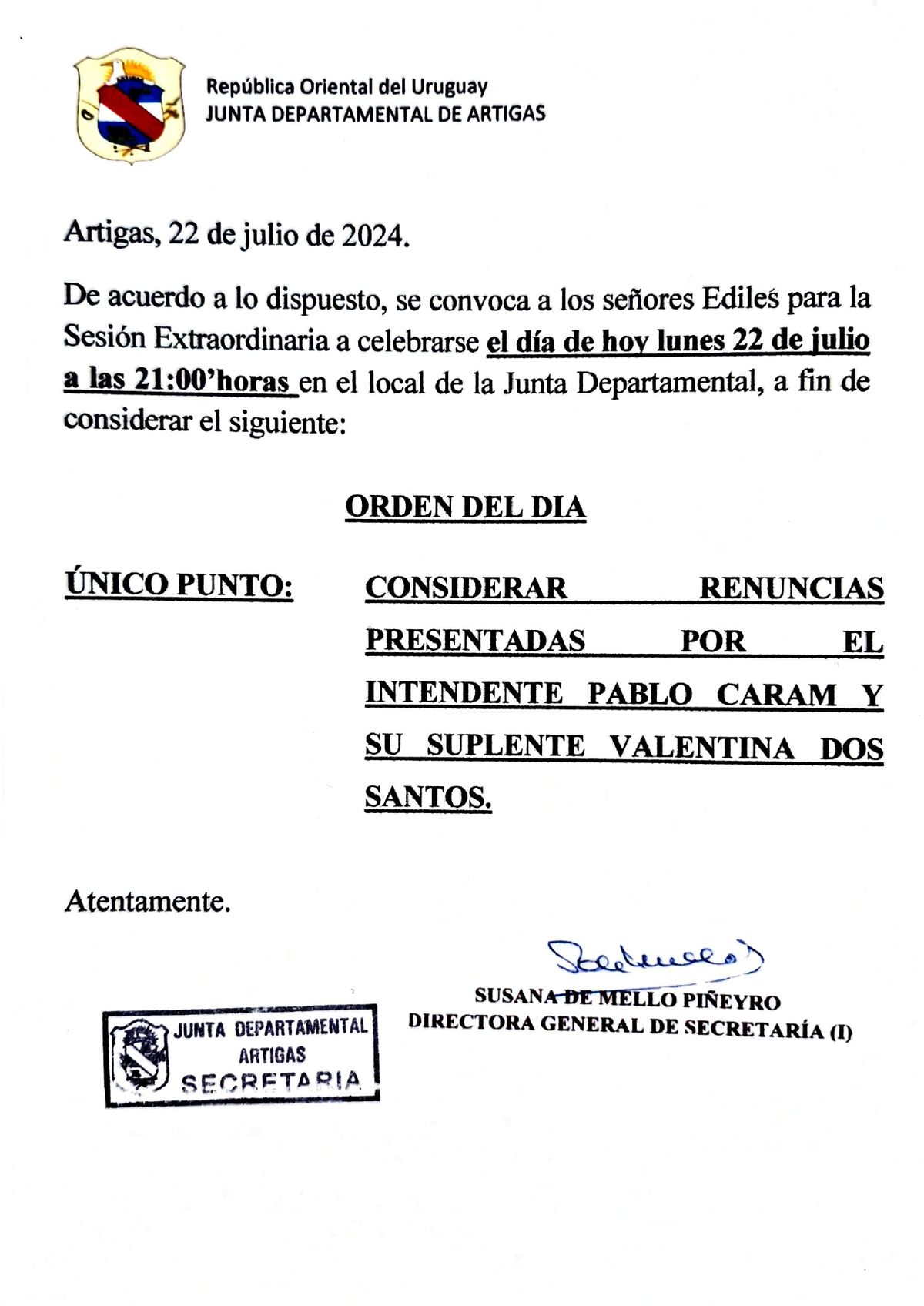 Pablo Caram renunció a la Intendencia de Artigas y el cargo lo ocupará Elita Volpi, escribana que es investigada por un caso de apropiación indebida.
