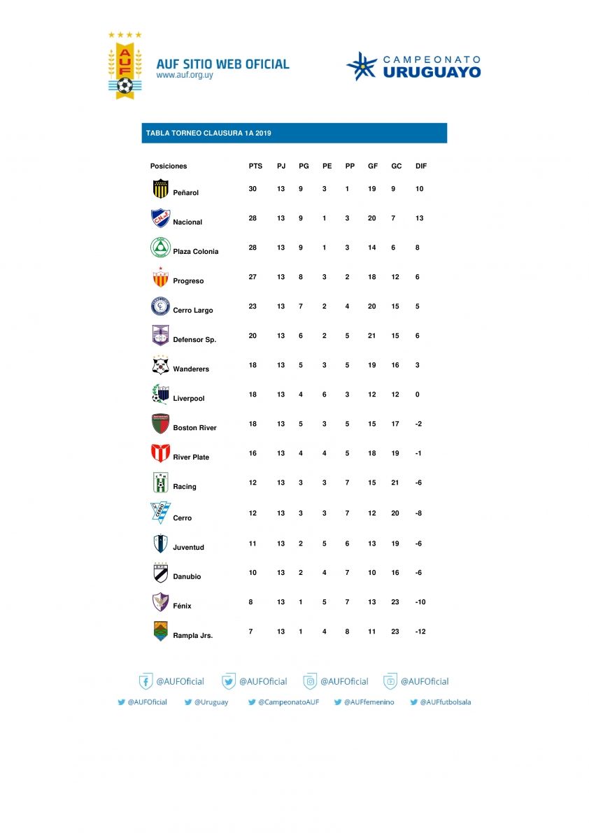 POSICIONES TORNEO CLAUSURA