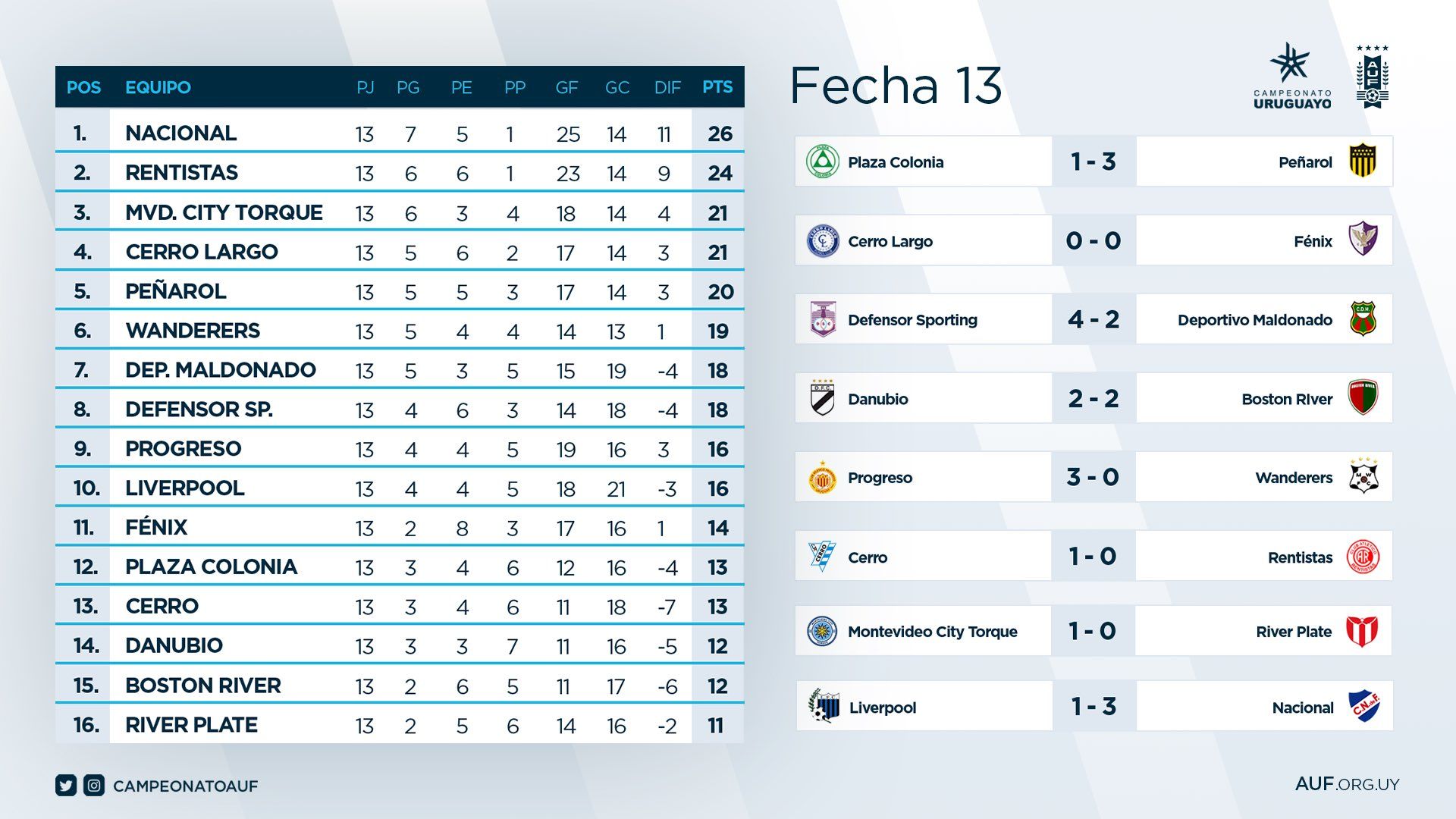 Resultados, posiciones y próxima fecha (14ta)