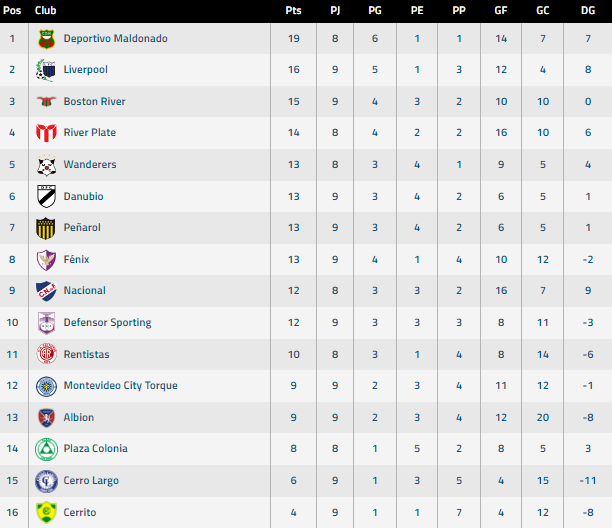 Este domingo jugarán Deportivo Maldonado con Plaza desde las 15:00 horas en el estadio Domingo Burgueño Miguel; Nacional recibe a River Plate en el Gran Parque Central a las 18:00 horas y cierran Rentistas con Wanderers en el Parque Palermo a las 20:30 horas.