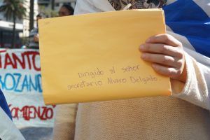 Parados al frente de las puertas de Presidencia, decenas de vecinos cantaron el himno, alzaron sus pancartas e hicieron palmas para llamar la atención del Gobierno. Una de las voceras leyó una proclama que comienza relatando que el barrio se inició de manera espontanea en enero, con la llegada de las primeras 30 familias, y que hoy son aproximadamente 1000.
