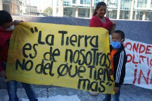 «Tierras para quienes la habitan…», rezaba un cartel que sostenía una de las niñas del barrio Santa Catalina. Otros dos niños llevaban una pancarta con la inscripción «la tierra es de nosotros y no del que tiene más». Habían muchos niños que portaban mensajes que sus caras parecían comprender. También habían madres, padres y militantes que se acercaban a acompañar la causa.