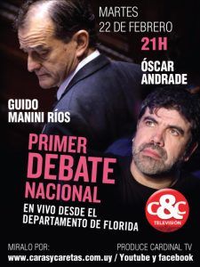 El debate televisivo tendrá lugar este martes 22 de febrero, a las 21 horas en los estudios de Cardinal TV, en Florida. Caras y Caretas TV será uno de los canales que retransmitirá la instancia de discusión.
