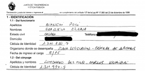 Esa afirmación de la senadora sin embargo no se ajusta a su declaración jurada donde expresa que el dinero que recibió por la expropiación de estos padrones es lo que le permitió tener parte de estos bienes y ahorros.