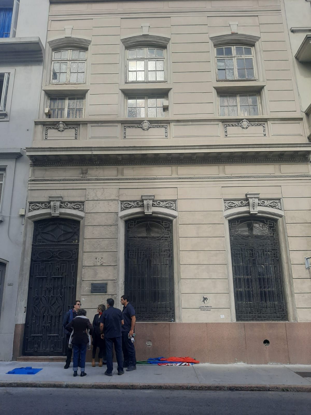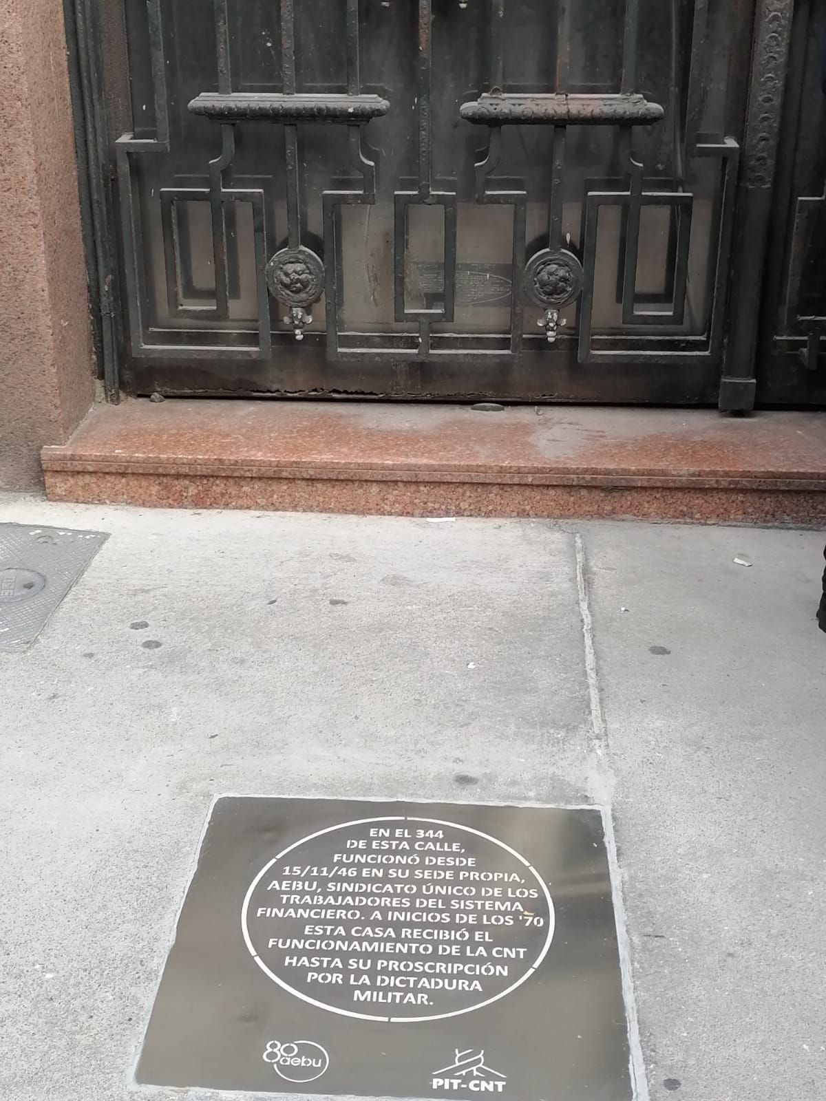 En la vereda de dicha sede, AEBU colocó una placa conmemorativa en el marco de los 81 del sindicato bancario que acaba de realizar elecciones, y esta noche a partir de las 20 horas se instalarán las nuevas autoridades.