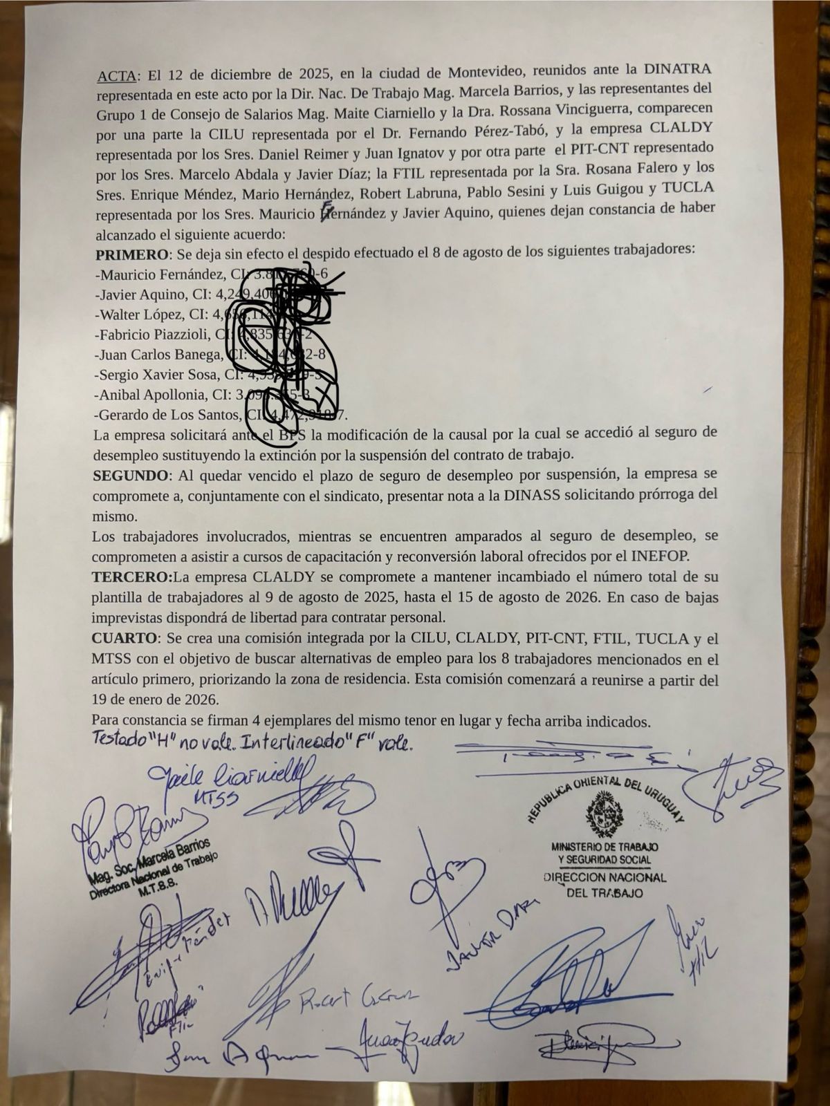Claldy y trabajadores llegaron a un acuerdo: quedaron sin efecto los ocho despidos