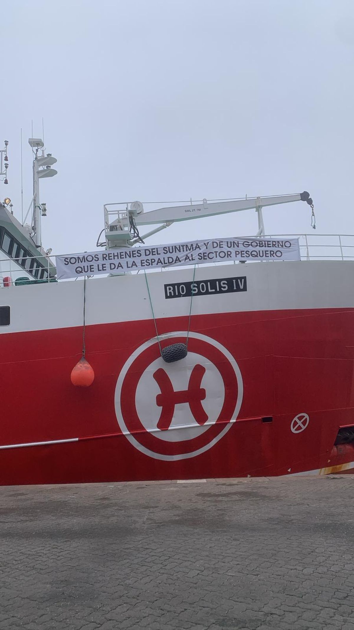 Algunas expresiones por parte de los armadores de la pesca se encuentran en pancartas y las patronales apuntan con fuerza contra el sindicato y el gobierno.