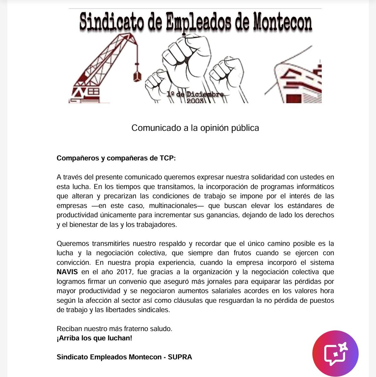 Este sistema ya fue implementado en 2017 por Montecon y generó un conflicto de iguales características con los trabajadores de esa empresa portuaria. De hecho, el Sindicato de Empleados de Montecon se solidarizó con los colegas de TCP ante este nuevo conflicto del Sindicato Único Portuario y Ramas Afines (Supra).