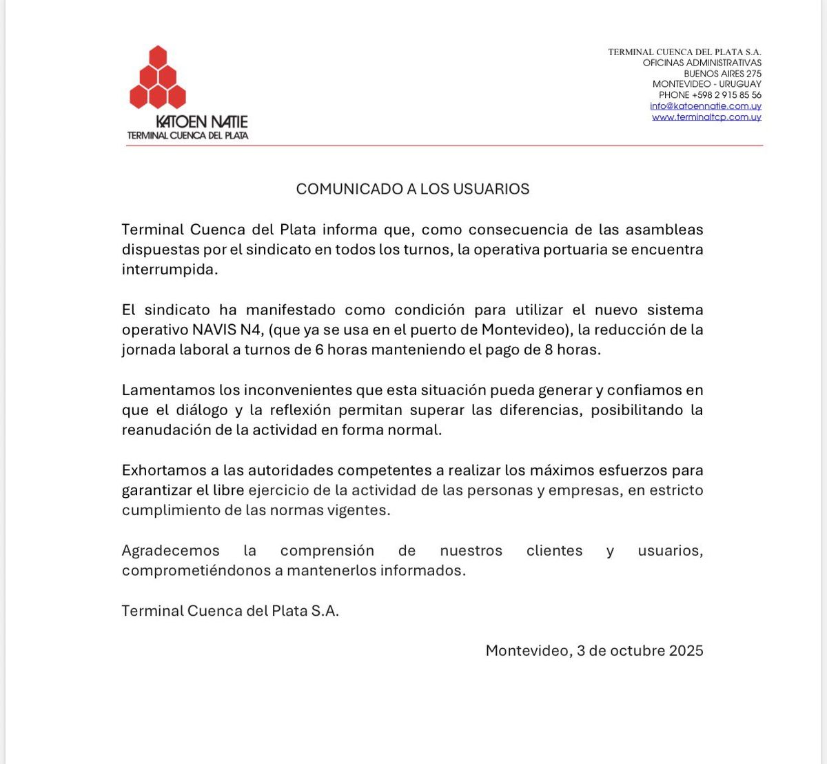 Explicó además que "el módulo de pagos web aún no está disponible. Estamos trabajando activamente para resolver esta situación lo antes posible, asegurando el nivel de calidad esperado", detalló Katoen Natie.