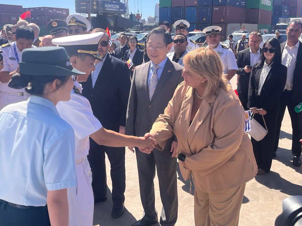 La delegación fue recibida por el embajador de China en Uruguay, Huang Yazhong; la ministra de Defensa Nacional, Sandra Lazo, y autoridades de la Armada Nacional.