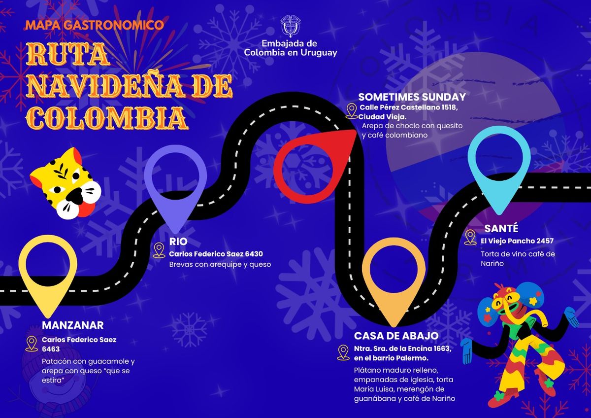 Entonces con la idea de que la navidad se sienta un poco más cálida para las familias, la embajada y el consulado se han aliado con cinco restaurantes para tener platos navideños típicos de Colombia, la idea no solo es que estén al alcance de las familias colombianas, sino que la población del Uruguay y la que viene de cualquier parte conozca más de nuestra gastronomía.