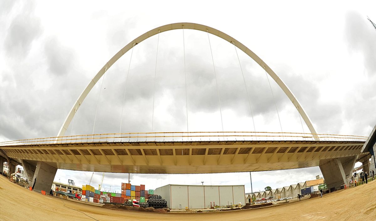 Según los datos oficiales, esta obra tiene 1.800 metros de largo. El puente arco se extiende a lo largo de 160 metros, pesa 1.250 toneladas y tiene seis carriles (tres de ida y tres de vuelta), y en su entorno, en la zona de ingreso a la terminal portuaria, tiene una serie importante de obras anexas.