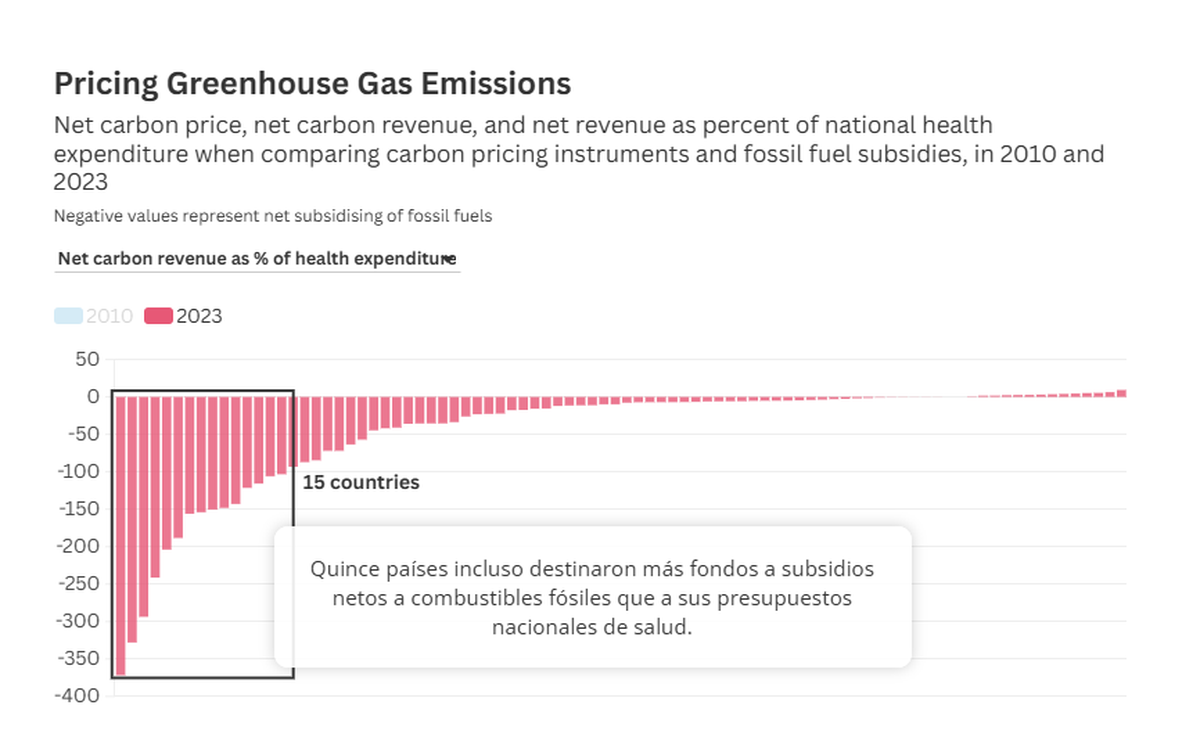 En 2023, los subsidios netos a los combustibles fósiles ascendieron a 956.000 millones de dólares, más del triple de lo que se destinó a ayudar a los países más vulnerables al cambio climático. Las inversiones en petróleo, gas y carbón crecen mientras se estancan los fondos de adaptación y mitigación, una contradicción que los autores califican de “inaceptable desde cualquier punto de vista de salud pública”.