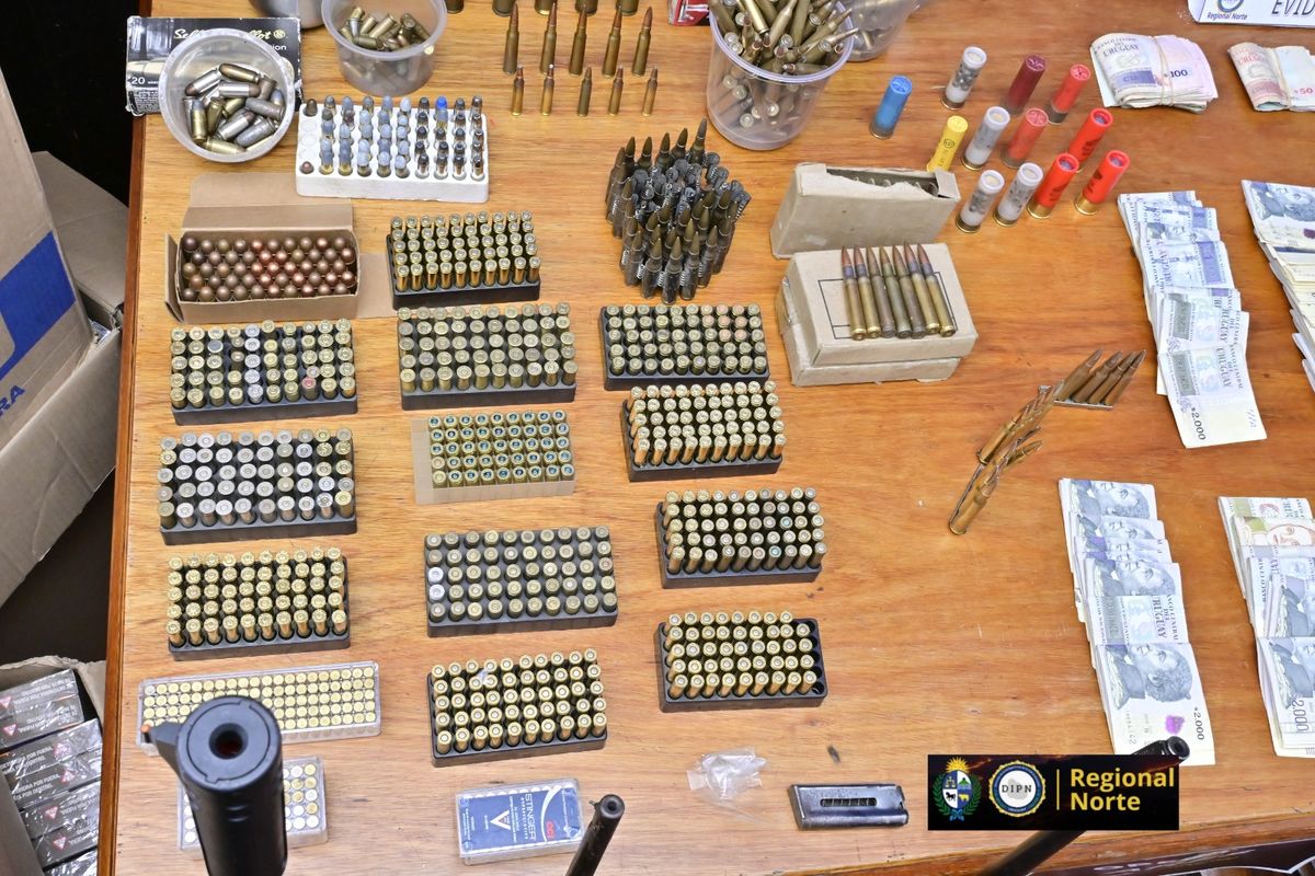 Se ejecutaron 35 allanamientos simultáneos en las ciudades de Rivera, Tranqueras, Vichadero, Minas de Corrales y Artigas, tras constatar la existencia de un grupo trasnacional dedicado a la comercialización de armas de fuego y municiones de diversos calibres mediante redes de mensajería. Se formalizó a más de 30 personas —entre ellas dos adolescentes— y se incautaron cientos de armas, más de 3500 municiones de distintos calibres, siete vehículos, cigarrillos, celulares y otros elementos.