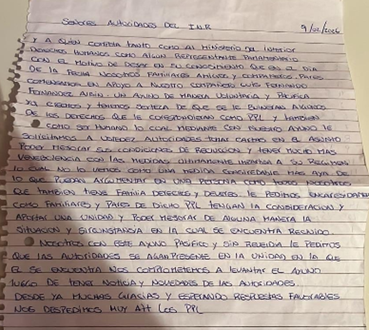 Mediante carta enviada a las autoridades, y que circula por las redes, los privados de libertad reclaman mejores condiciones de reclusión para Fernández Albín.