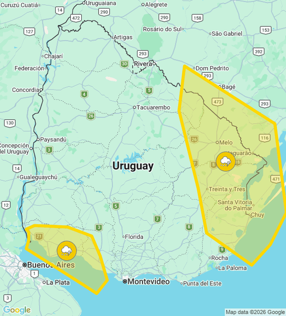 Según informó Inumet, la alerta de color amarillo se actualizará a las 20:45 o en caso de existir "cambios significativos".