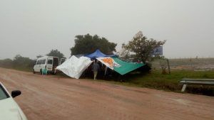 El Sunca instala como medida de protesta hoy un campamento y olla popular frente a la cementera tomando todas las medidas de distanciamiento social requeridas; pasa a atender así dos ollas, una que ya funcionaba en el local sindical ya que la empresa se había comprometido a dar 10 mil pesos para engrosar los 10 o 12 mil pesos que implica el seguro de paro parcial, que no contempla las necesidades mínimas de una familia.