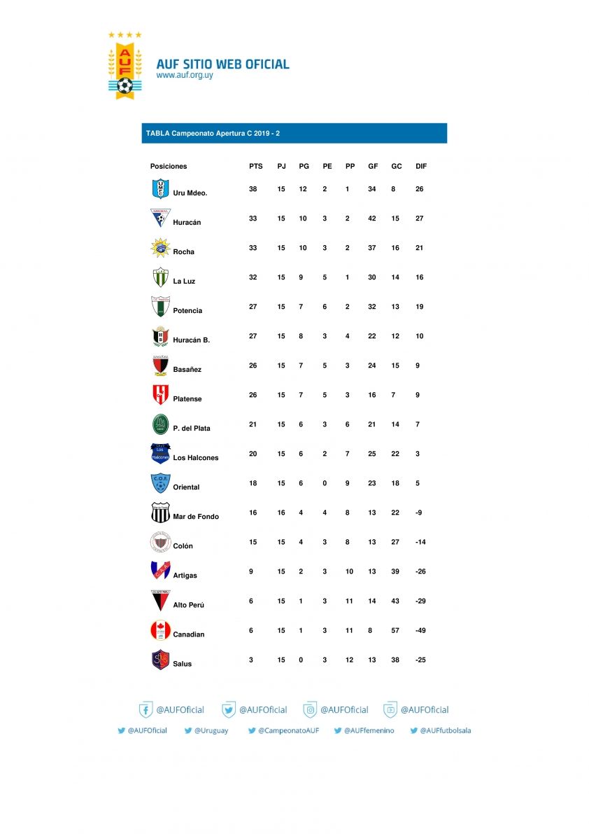 También quedaron clasificados los ocho equipos que jugarán el Clausura: Uruguay Montevideo, Huracán FC, Rocha, La Luz, Potencia, Huracán Buceo, Basáñez y Platense.